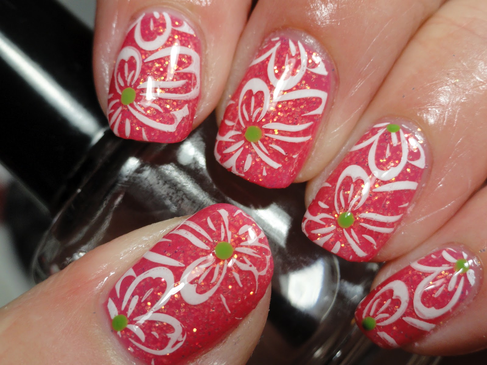 Yes, the alternating upside down hearts was on purpose...just for something different to change it up a bit! I think this would be cool with the same images but with black stamping polish...another day perhaps!