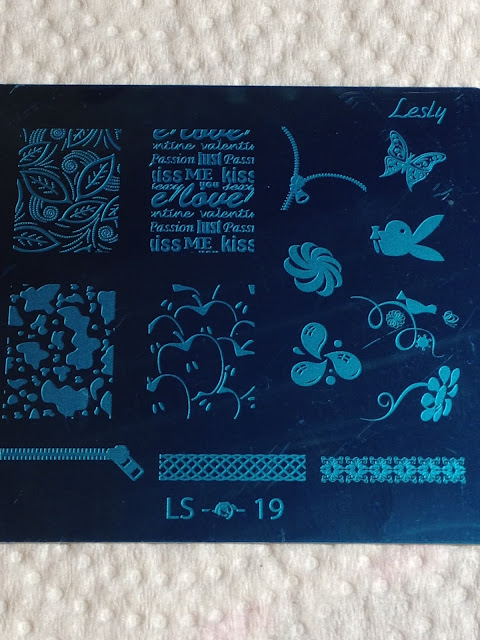 Stamped using black Konad special polish using Chez Divers 001 on all fingers except ring finger; SdP 111 was used for it.