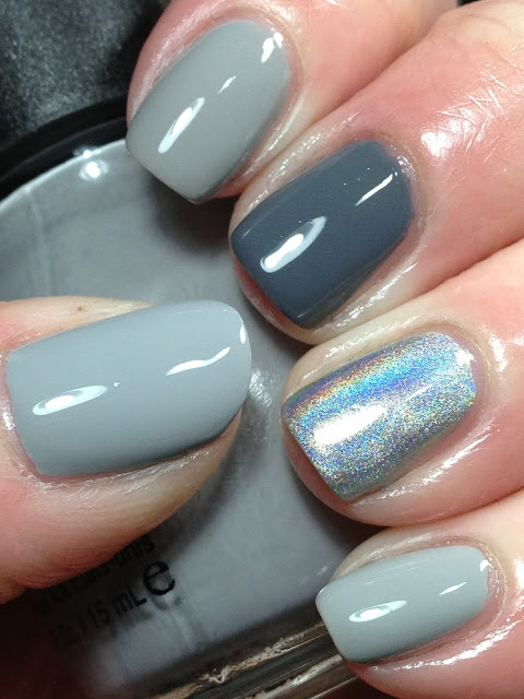 Started with a base of two coats of Sinful Colors Cool Gray; top coated using HK Girl topcoat.