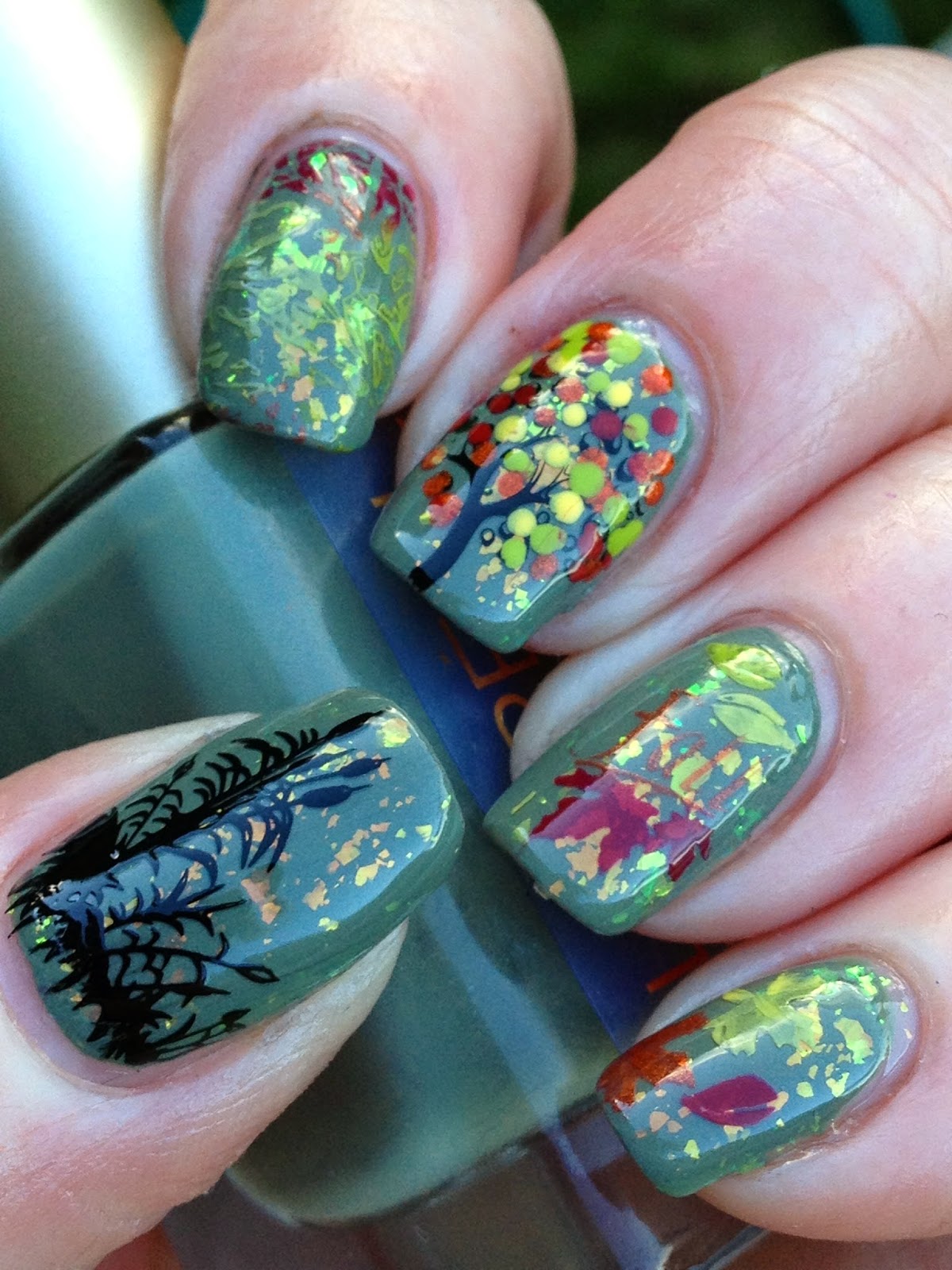 I did this mani in cottage country and only have natural daylight. I started early evening and it was still sunny but when I finished, the sun and daylight was fading fast so lighting wasn't the best and lots of shading in some pix.