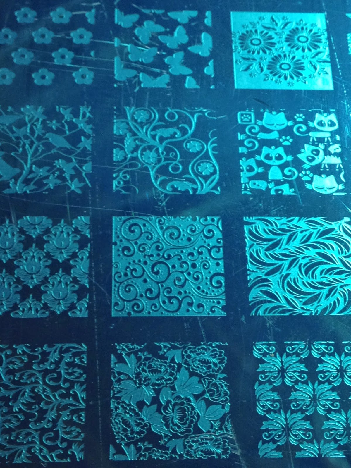 Stamped using Funky Fingers Gesso using Bundle Monster BM-311 on all fingers except accent. Accent is stamped with Apipila 03 and VL011.