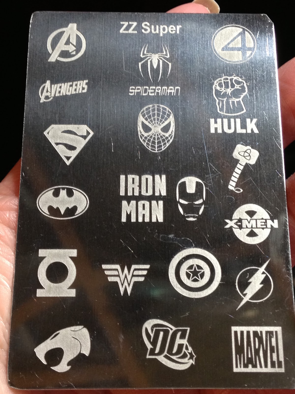 Stamped using assortment of images; UberChic Sports Fan-01 (middle, ring and footballs on index), BundleMonster BM-XL181 (words in index, and pinky), ZZ Super (Panther on thumb) and MJ XXIV (Bronco image on thumb). Unfortuntely I couldn't find a better Panther image then the one I used on the thumb so sorry to all the Panther fans that its not more accurate! Stamping polishes used were Funky Fingers Gesso and Dark Knight and assortment of Mundo de Unas; 3, 22 and 53.