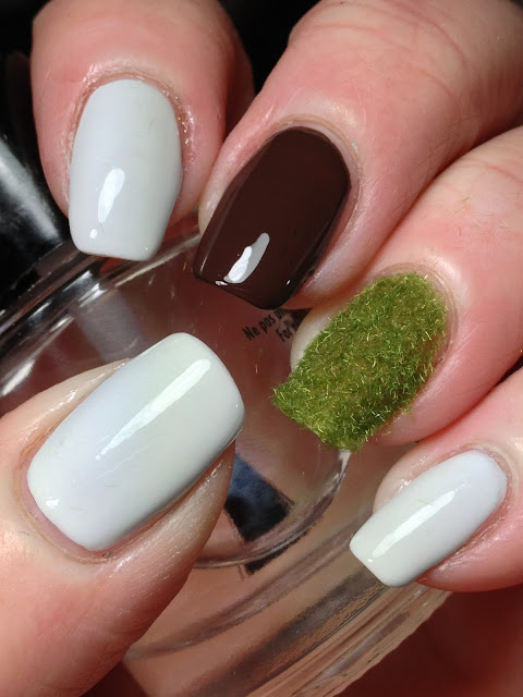 Started with a base of two coats of OPI My Boyfriend Scales Walls, L'Oreal Brownie Points and an accent of AstroTurf.