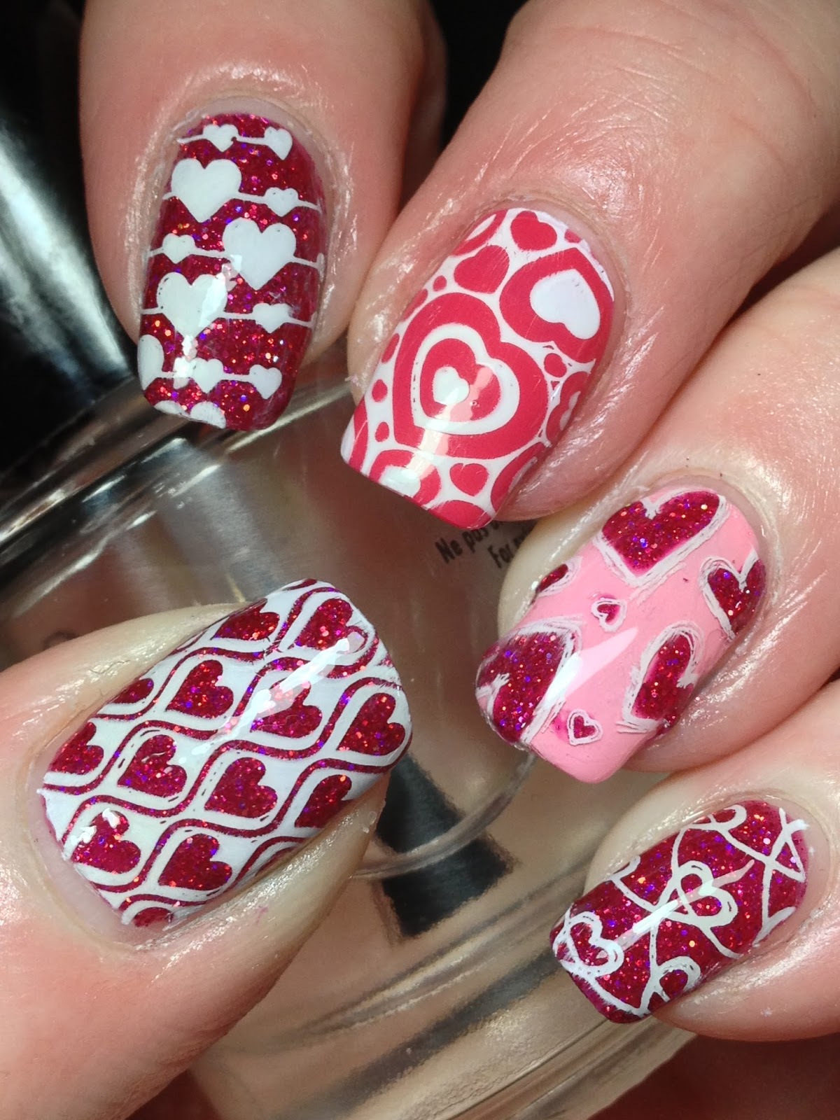 I had initially planned to stamp the ring finger with MdU Valentine's 1 but then had the crazy thought to make a stamper decal and filling the hearts with Illyrian Killer Queen. As I was in the middle of doing my nails when I came up with this, I kinda rushed the decal so it didn't dry as long as I would have liked which smeared some of the stamping and the polish.