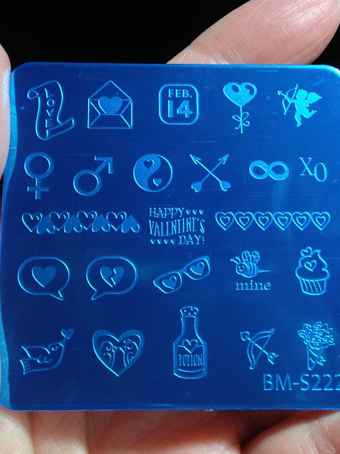 Started with a base of two coats of OPI My Boyfriend Scales Walls, then top coated with Girly Bits What A Rush QD TC before stamping (no pix has have shown before). Using the clear jelly stamper from Fab Ur Nails, stamped using images from Bundle Monster BM-408 (thumb), Infinity 148 (middle words and ribbon on index and ring), and Bundle Monster BM-321 (rest of the ribbons). Used assortment of MdU and MoYou stamping polishes for the ribbons in support of the various cancer awareness groups. I had to shrink the earth image using the UberChic luxe stamper, then placed it (not too well as you can see lol). We need a clear jelly stamper now that images can be shrunk.