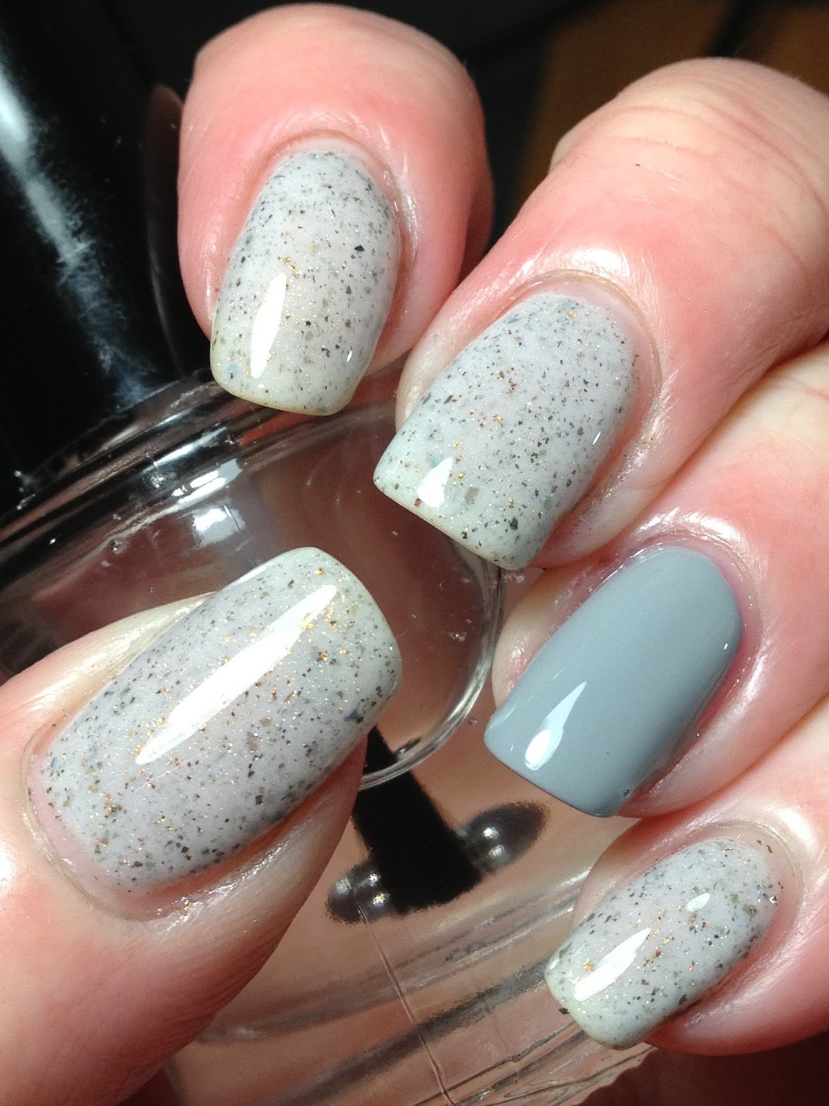 The great thing about the jelly stamper is you can place the images on top of your base imperfections! Stamped ring finger using FunkyFingers Dark Knight using MoYou Roxy Collection-06 and same image from MoYou Back to the 60's-01 on the thumb.