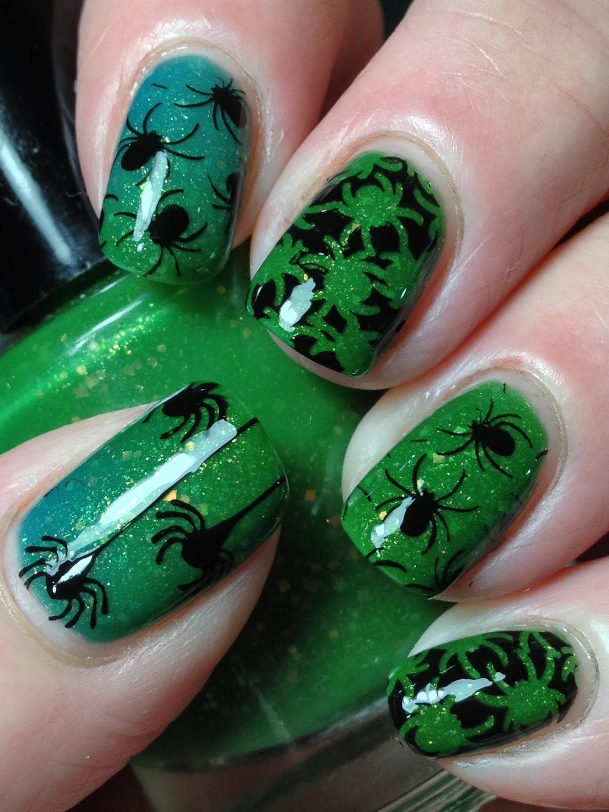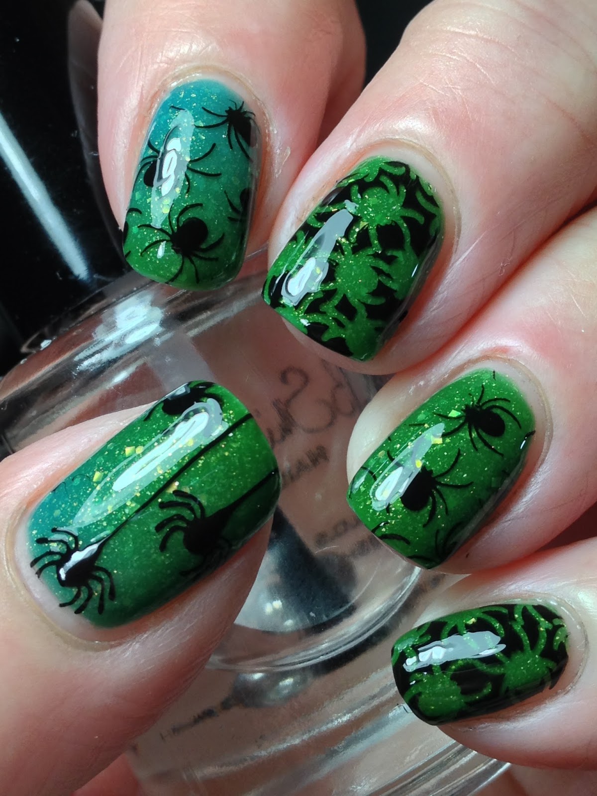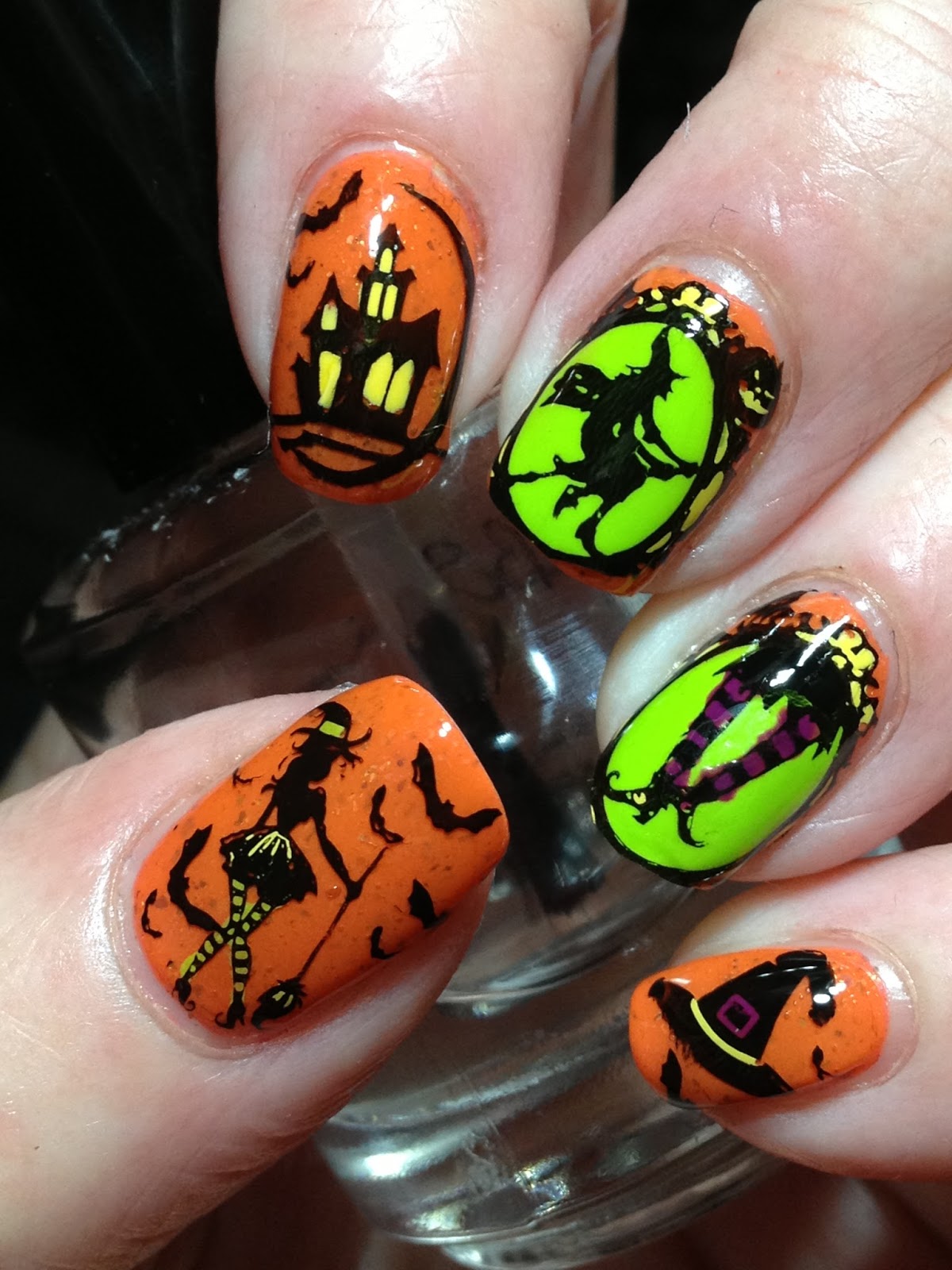 Applied stamper decals using images from DXE04 (index, middle and pinky), DXE16 (thumb) and Infinity 146 (ring). The added stamped pumpkin is from DXE01 using MdU 13, the words on the index are from SPH-001.