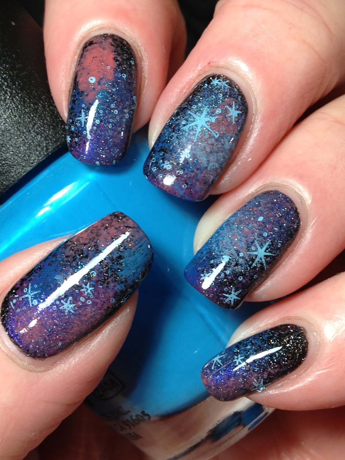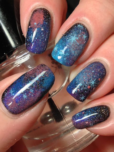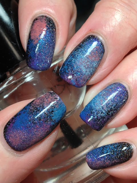I'm going to soon start sharing some Valentine's Day mani's, but before I do, I thought I'd share this mani I did a week or so ago. This is some of my favourite things (dusty cremes, blue, sponged gradient, easy peasy)! If you seen my New Year's post, you might remember that the Pretty & Polished dusty creme polishes are some of my faves right now. Just a little bit of a something something to make for an interesting base for stamping. Well, I thought I would see how well they gradient and must say, not too shabby if I do say myself! Here's what I came up with!