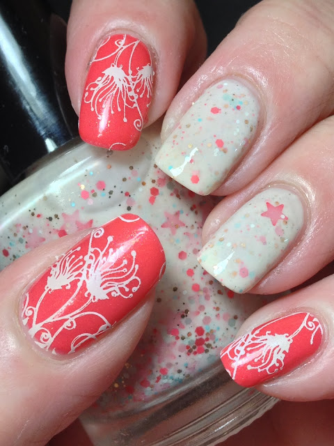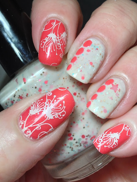 I decided to do a tri-mix for the stamping too using MoYou Beach House and Cool Pool and Esmaltes da Kelly Icaro with images from FUN 3 and an accent of UberChic UC 14-02.