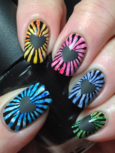 These are the coolest nails I've done in a while..... to me, anyway! They were suppose to be off beat Valentine's Day nails but I decided to share as part of Digit-al Dozen week with the theme of black instead. With it being so close to Vday, they are still relevant anyway! But I do think these could be worn any time of the year because honestly, do hearts or skittles ever go out of season? Here's what I came up with!