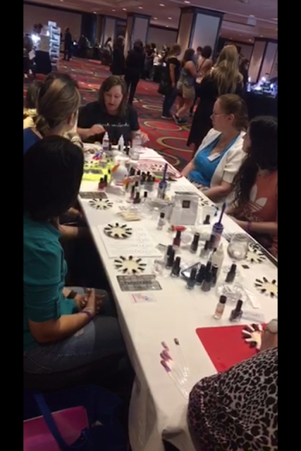 While the expo was going on, there were several bloggers who did very informative tutorials; this is Melissa of Honeybee Nails at the water marbling tutorial.