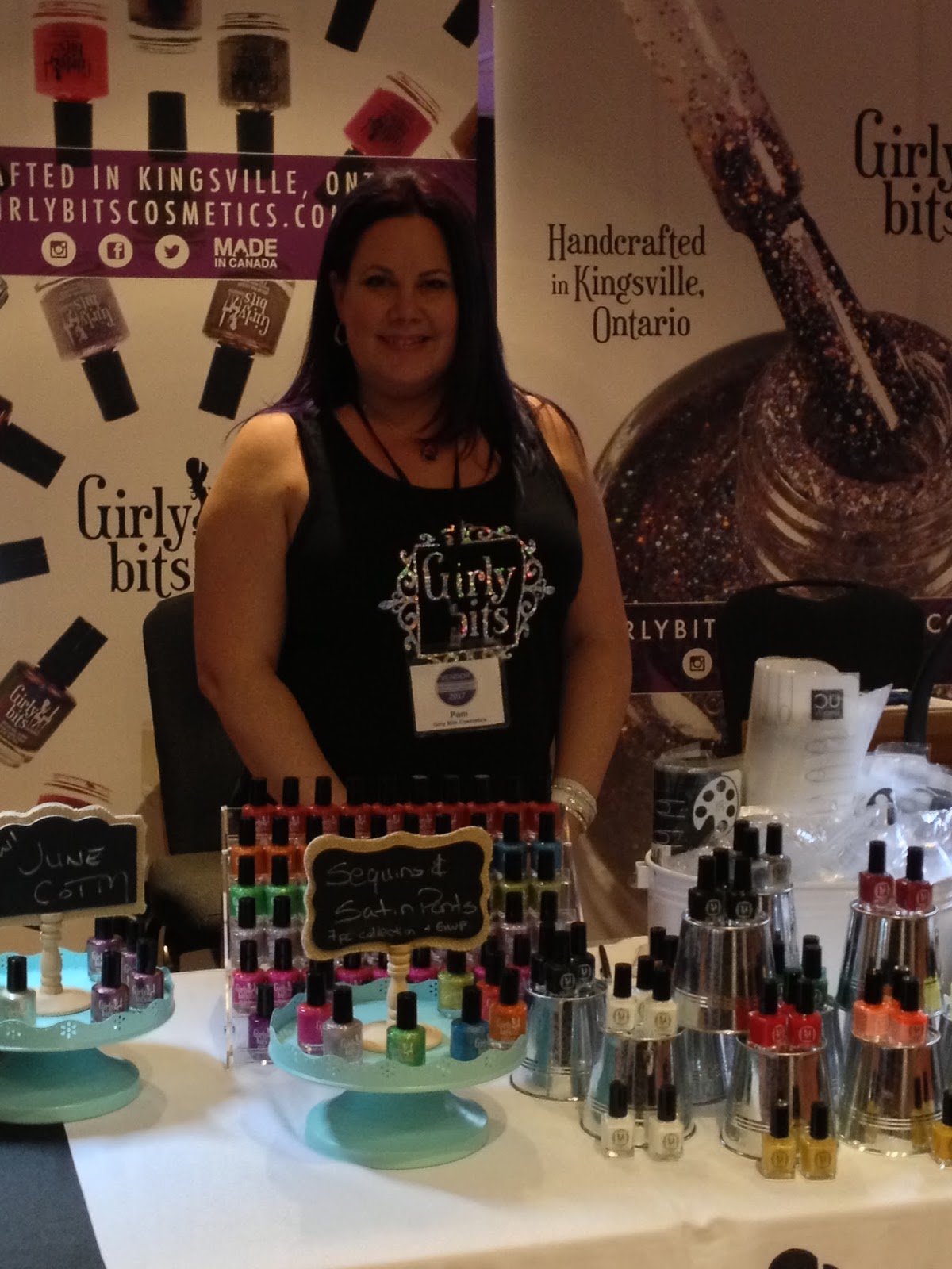 The Girly Bits Cosmetics display greeted everyone as they entered the venue. Pam Heil is the founder of Girly Bits Cosmetics; her polishes are proudly handcrafted in Kingsville, Ontario since 2012. The Girly Bits display had a wide assortment of polishes, stamping supplies, powders, additives and other supplies!