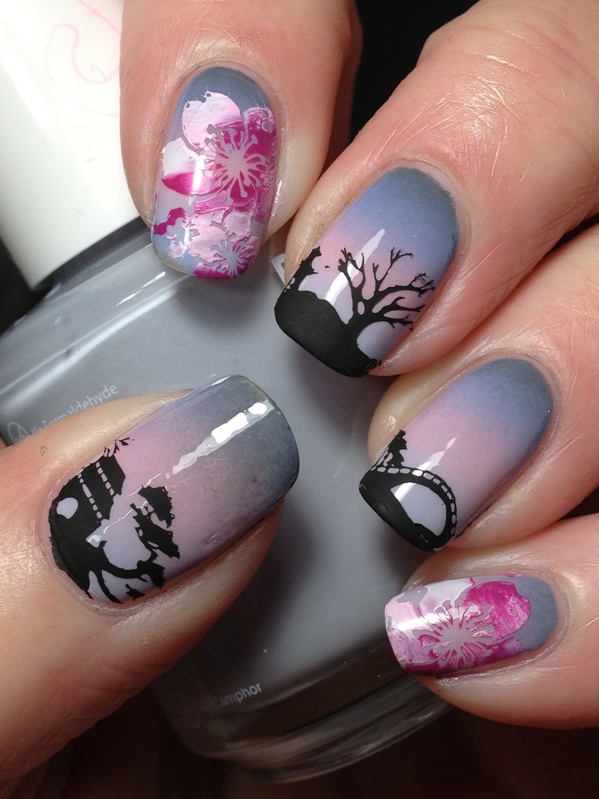 Started with a base of two coats of Fiendish Fancies You're Hysterical Henry. There were no application issues and clean up was a breeze!