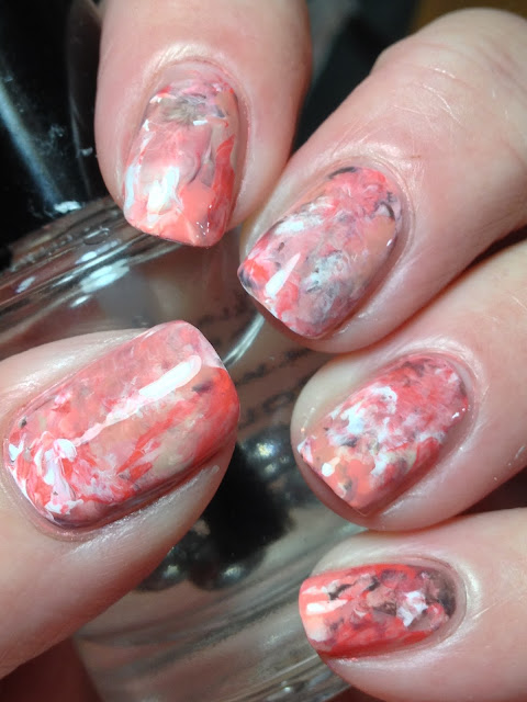 A cold front blew in a couple days ago and we have temperatures more seasonal of fall. While this isn't a fall mani per se, it's about the closest I have to a fall mani to share right now...but hey, to me, it's appropriate for any time of the year! This mani is one of those rare times I thought to stamp with a colour other than black or white and I have to say, I loved how it turned out! Here's what I came up with!