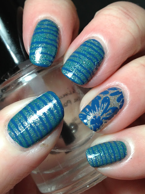 Started with a base of two coats of Pahlish Bespoke Boo-Ya!, no top coat.