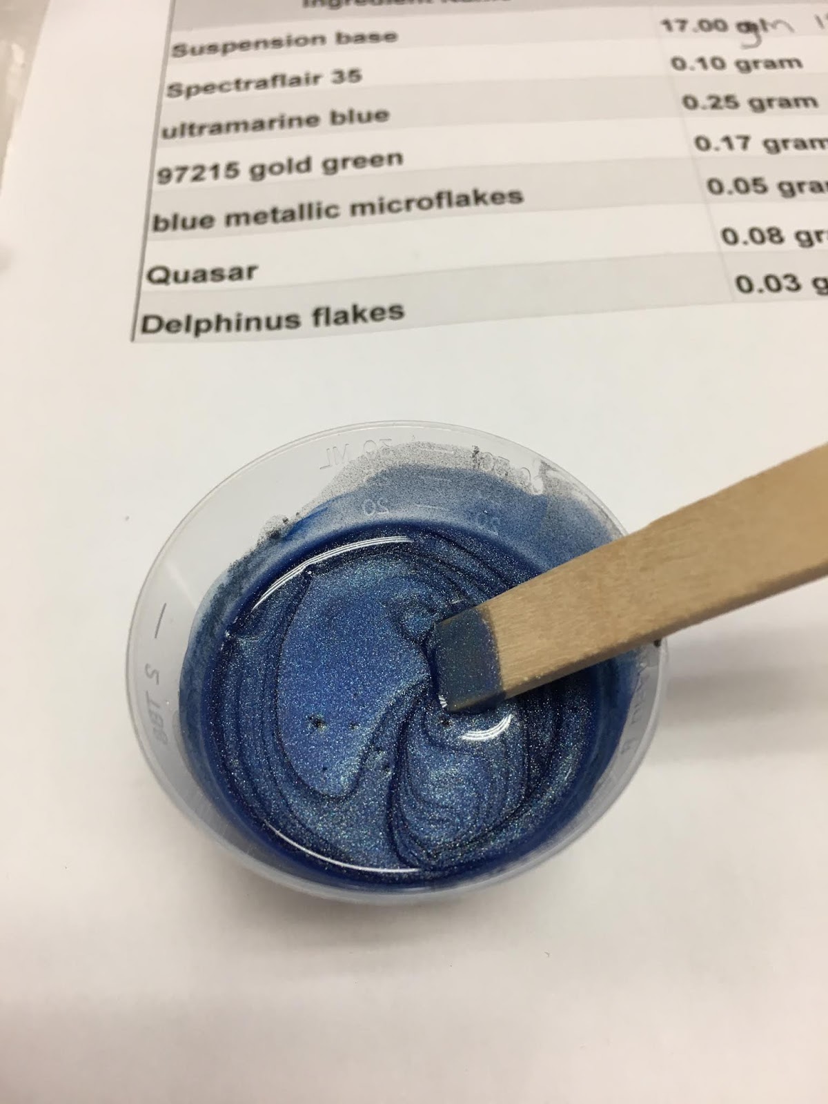 The list of ingredients for our group custom; this is after adding the base as well as the spectraflair.