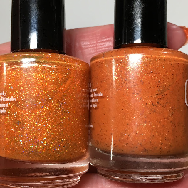 here! Each polish is beautiful in it's own way; there are lots of pictures in this post so grab your favourite pumpkin spice drink before you start reading as you'll want time to check out everything the trio has to offer! Each of the three polishes are perfect for Halloween....or any time of the year if you buck tradition like I do! I've also added some fun Halloween nail art throughout the post, hoping that it compliments each polish as Halloween is right around the corner!
