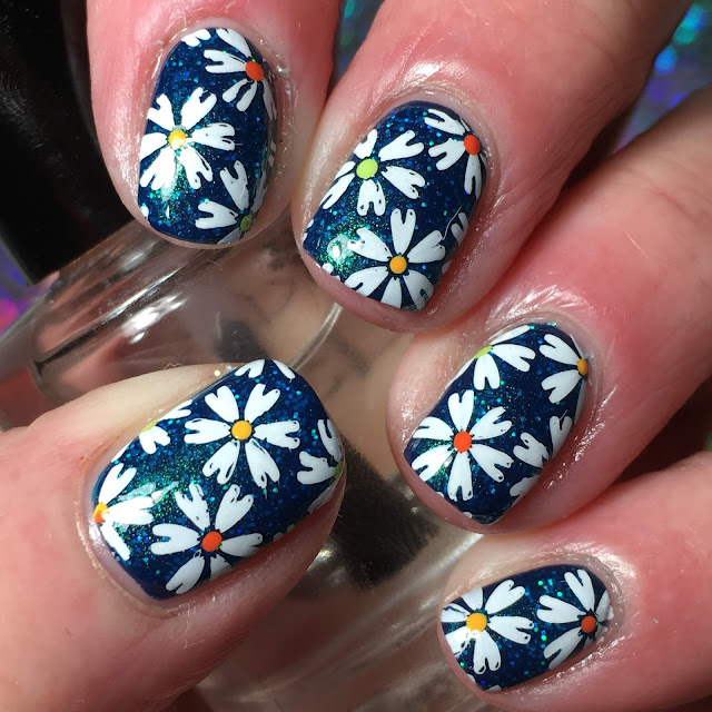 I was going to use this mani for Digit-al Dozen colours challenge as there are quite a few colours in this but I had so many other mani's, that I used them instead. Another floral mani, I love the brights against the darker base!
