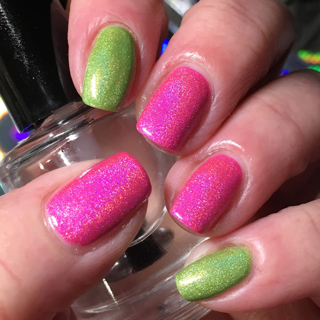 Started with a base of OPI My Boyfriend Scales Walls with accents of KBShimmer Holly Back Girl