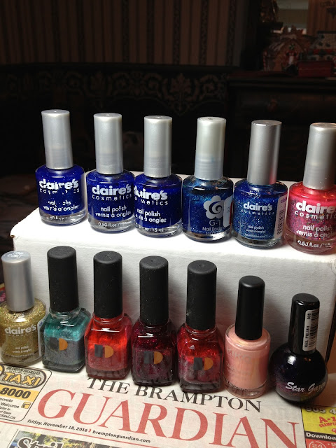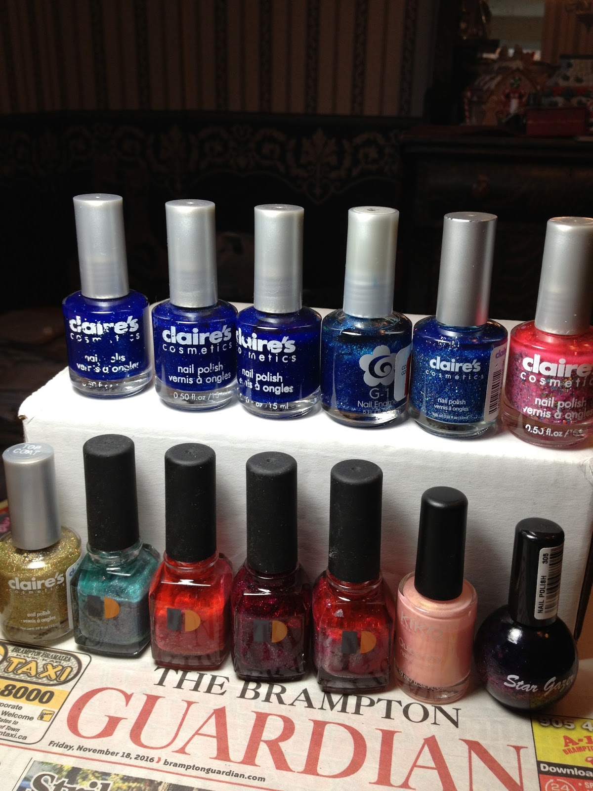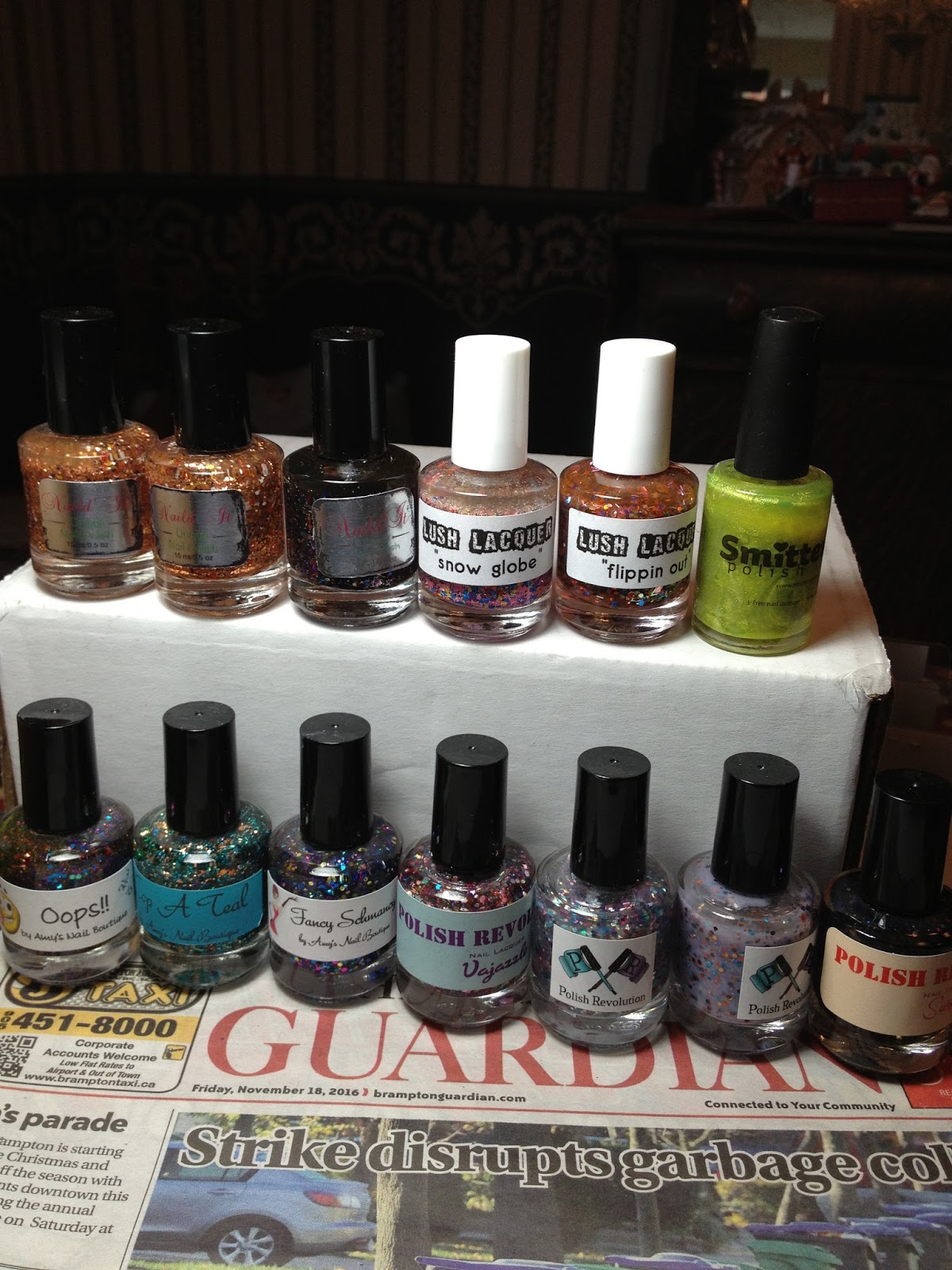 All polishes and other items are brand new unless obvious in pix or noted otherwise; however, there may be some evaparation in some of the polishes. If I have a box, I tried to take a pix of it and have noted it. 99% of the polishes have never been opened and never even swatched but might need a good mix; they have been stored in my basement in cool conditions and out of direct sunlight. Pet and smoke free home (I did own a pet when some of these were bought but my dog did not do his nails nor was he in my polish room; there'd be more of a chance that you will see dust or human hair on any of these versus any pet hair!) However, I will be reusing bubble wrap and boxes when possible and don't know their origin....but as the odour of smoke is unappealing to me, I would almost guarantee that if I received a package that had any smoke odour, it has already left my house! Anyone who follows my blog knows I don't edit pictures and rarely crop so sorry for any back ground nonsense; you might see the hubs in a picture or two and some reflection etc etc!