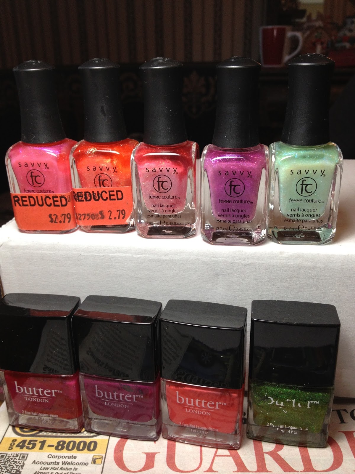 Del Sol Calypso, L'Oreal Iron Willed, Super Charmed, Rimmell Green with Envy, Torrid $2 each