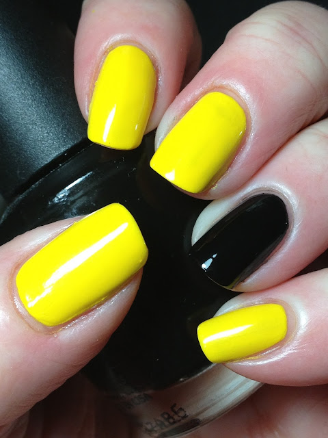Started with a base of two coats of China Glaze Lemon Fizz and FingerPaints Black Expressionism.