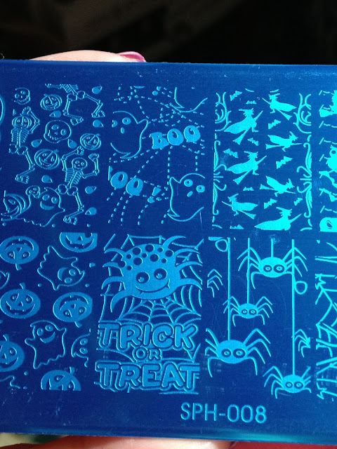 Topcoat ed with KBShimmer Clearly on Top. I really liked the look of this mani at this point but it didn't look very Halloween-y to me, so I decided to do some more stamping. Wasn't the best decision, but it is what it is.