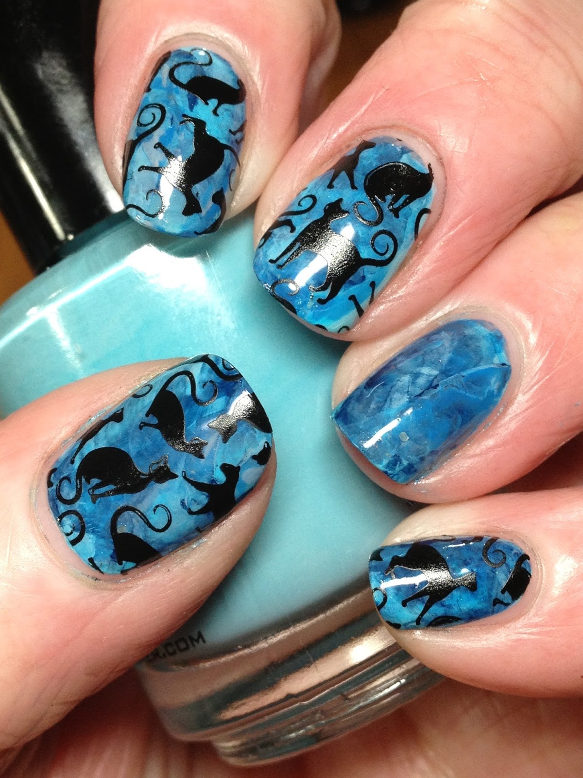 I love the look of water marbled nails; I see the awesome water marbling and have bought all the polishes that are suppose to yield good results, I've tried tap water same temperature as polishes, distilled water same room temperatures as polishes and watched countless youtube videos but still can't seem to grasp it! My very first attempt was somewhat successful and every attempt after wards has been a fail. I do hope to one day sit down and see if I can get better results but in the meanwhile, I thought these stamped nails imitating water marbling turned out pretty darn good if I don't say so myself! I'll stick to stamping until I can water marble better! Here's what I came up with!