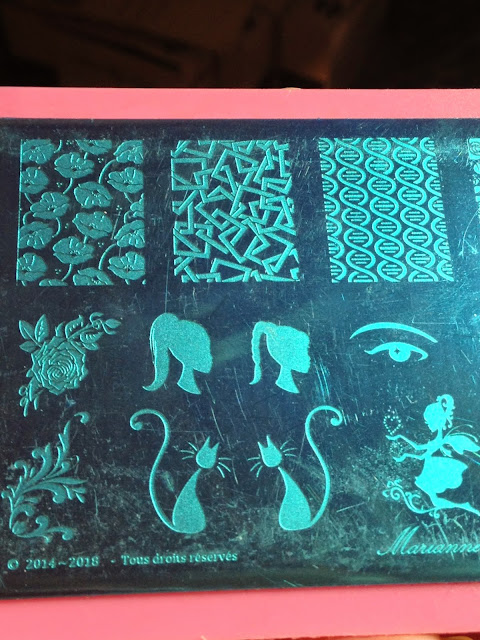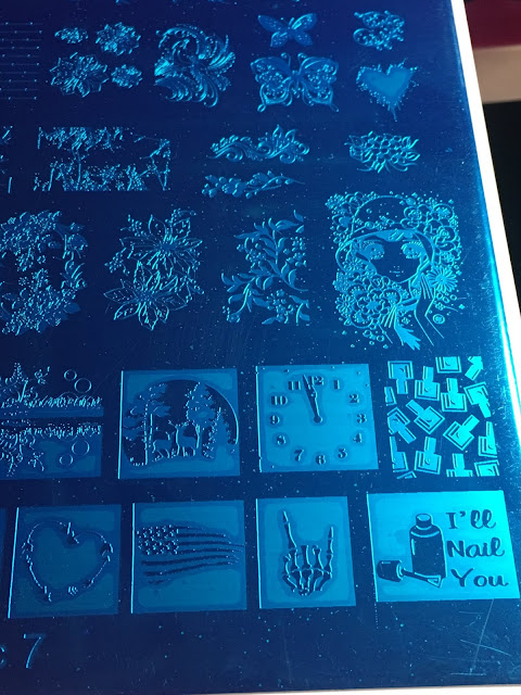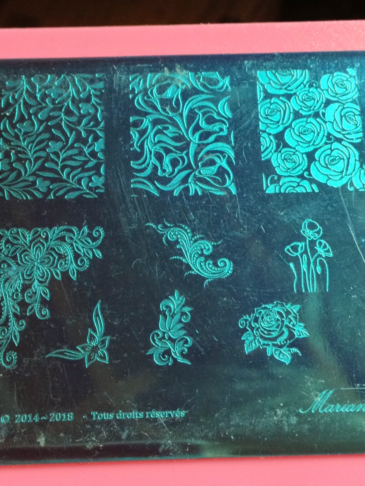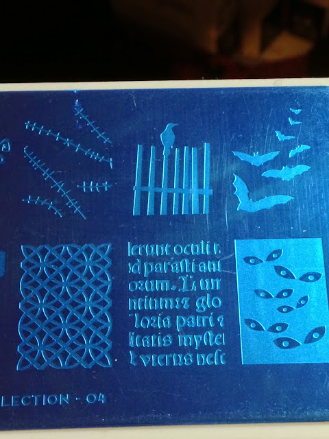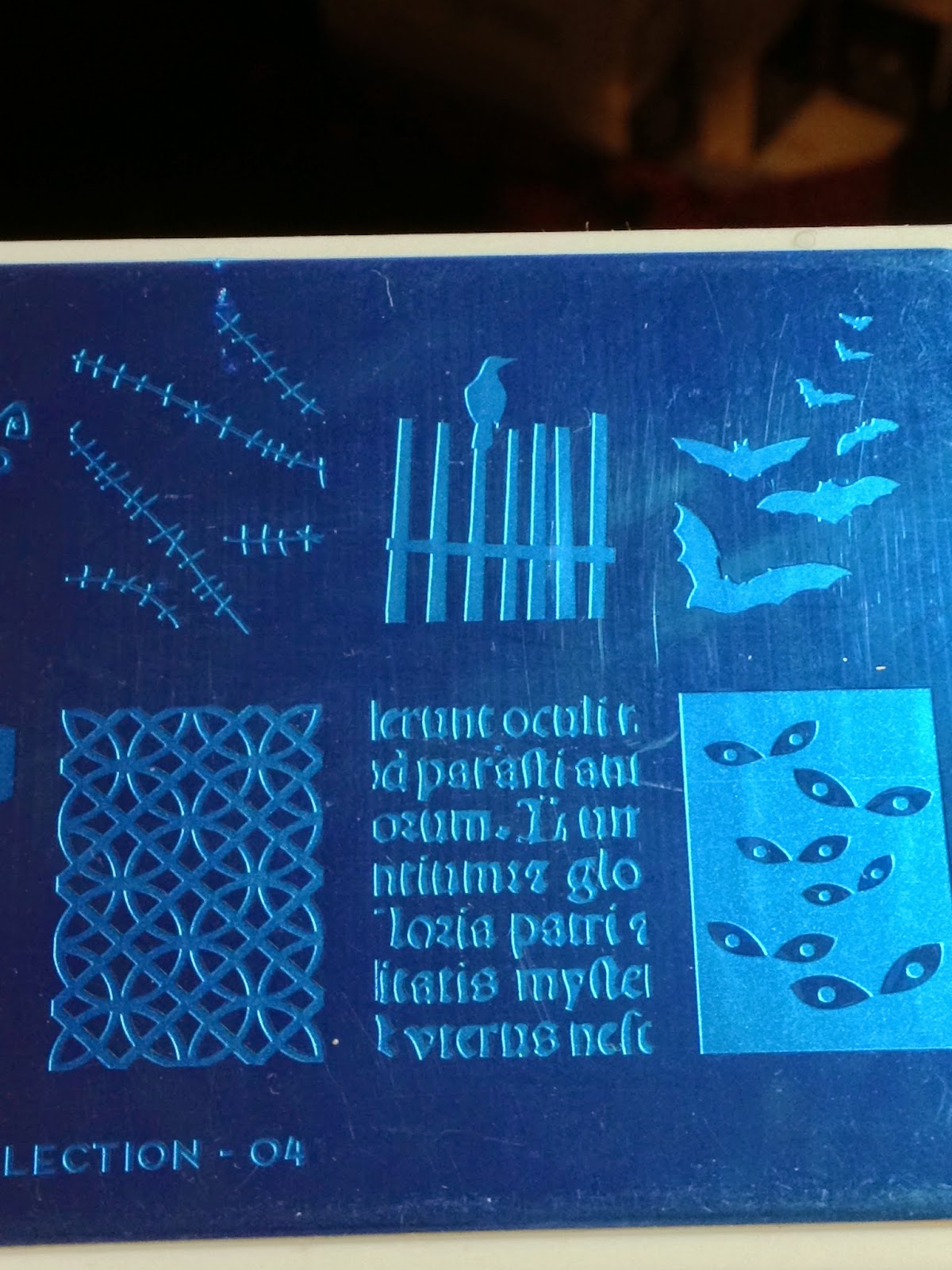 I applied a stamper decal I had made on the thumb from Big SdP E, then stamped on the rest of the nails using Marianne Nails n.56 (index), MoYou Gothic Collection-04 (middle), Marianne Nails n.22 (ring) and Wistonia W04 (pinky). The black voids on both the middle and index finger did not stamp fully no matter how light or which direction I scraped on; even with trying several polishes, stampers and scrapers so I eventually gave up and just filled in any bare spots with polish and a brush.