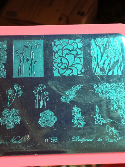 Added a few dots to the poppy centre on the pinky, then topcoated. I thought I had better take a pix now because I had purposely planned to stamp some letters and if I messed it up, this was the end result mani I would be showing!