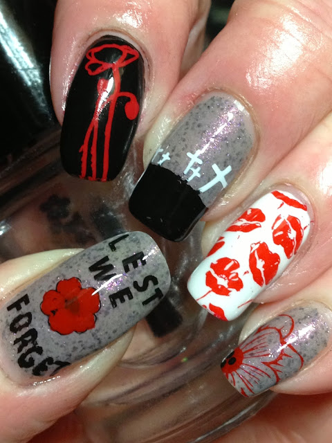 Today's mani serves a dual purpose; a Remembrance Day mani as well as a thankful mani for Digit-al Dozen Thankfulness. For Day 2, I'm thankful for all those who gave their lives and continue to serve so that we enjoy the freedom we have today
