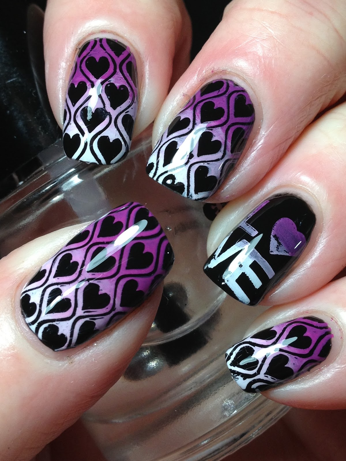 Stamped using MdU 34 using an image from Marianne Nails n.100. Roses because, hey, it's Valentine's week even if we have a theme of black!