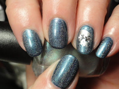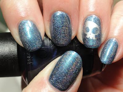 Anyhoo, my mani today is OPI Glacier Bay Blues topped with OPI What's Dune?, then just a little BM stamp.