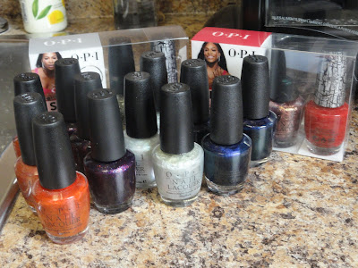 When I was thinking it out, I thought....what polishes do I get the most requests for swap (that I still can get anyway!) and realized that there's interest in OPI What's Dune?, OPI Coral Reef, OPI Merry Midnight and OPI Glacier Bay Blues. I was also able to get the new OPI Shatters and thought not everyone may have picked them up yet, so the giveaway is going to look like this: