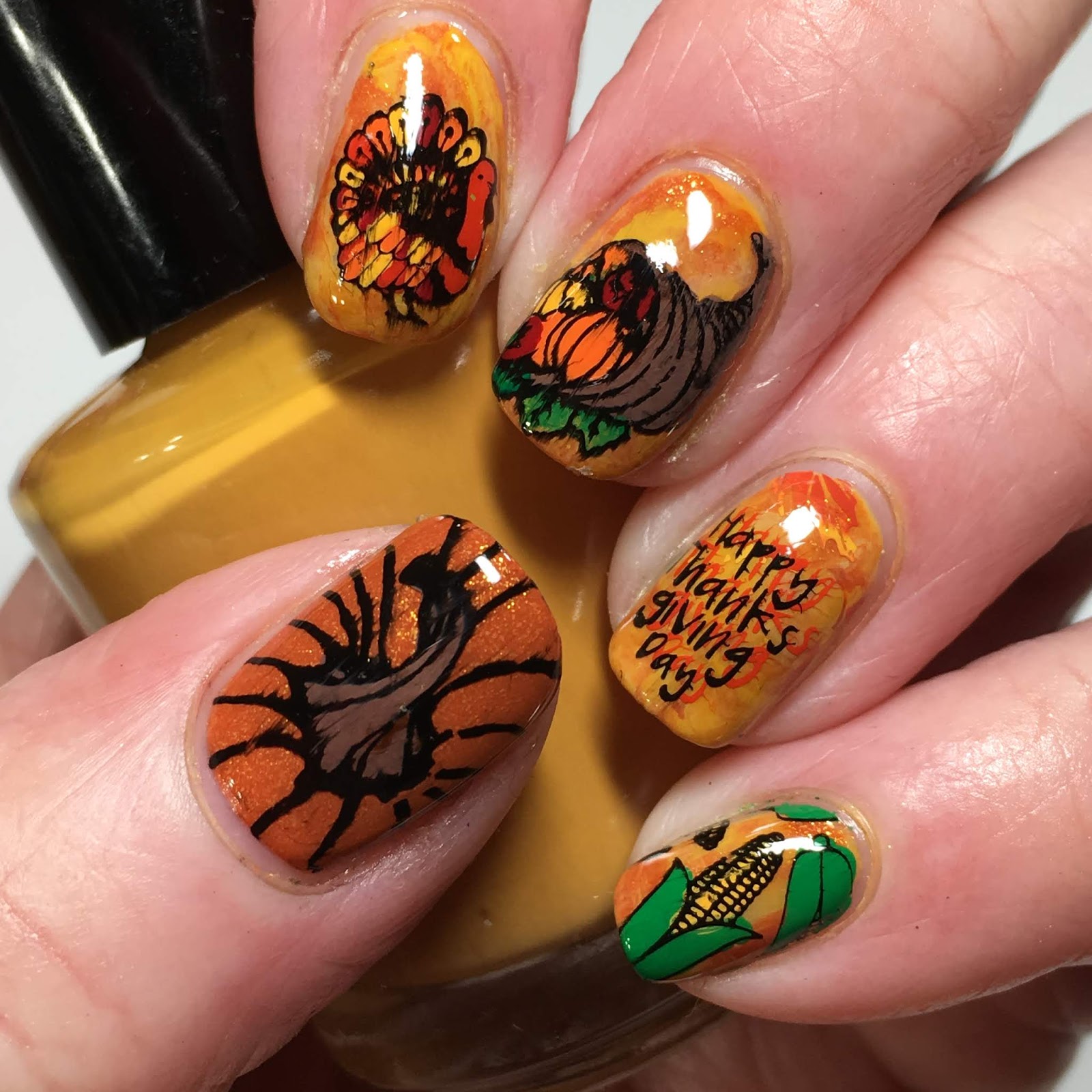 I guess it's technically still fall as winter doesn't officially arrive until December 21st, but everyone has been posting snowflakes and Christmas nails already, I thought that sharing fall mani's was over. But I did see my fellow Digit-al Dozen nail pal Copycat Claws posting fall nails yesterday and again today so I guess I'm not the only one still had fall nails to share! I just had so many ideas and did wayyy more fall mani's than usual. Oh well. Let's hope it continues and that I will think of lots of ideas for Christmas mani's! Here's what I came up with....and I promise not to share fall mani's until next year (that may be January 2019 but next year anyway)!