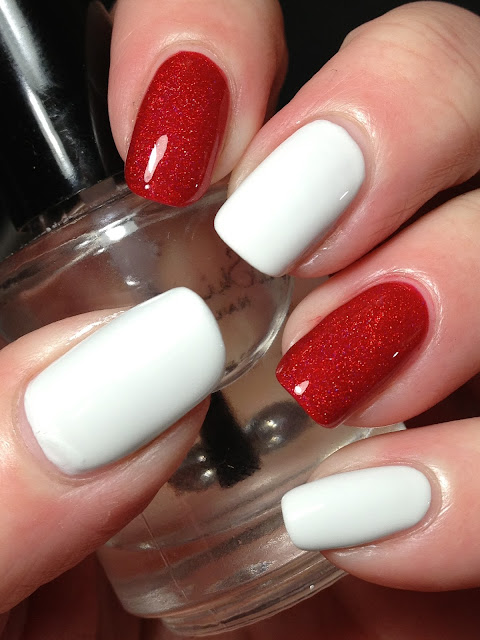 I started with a base of two coats of Colors by llarowe Oh Canada, an Indie Expo Canada exclusive, and OPI My Boyfriend Scales Walls.