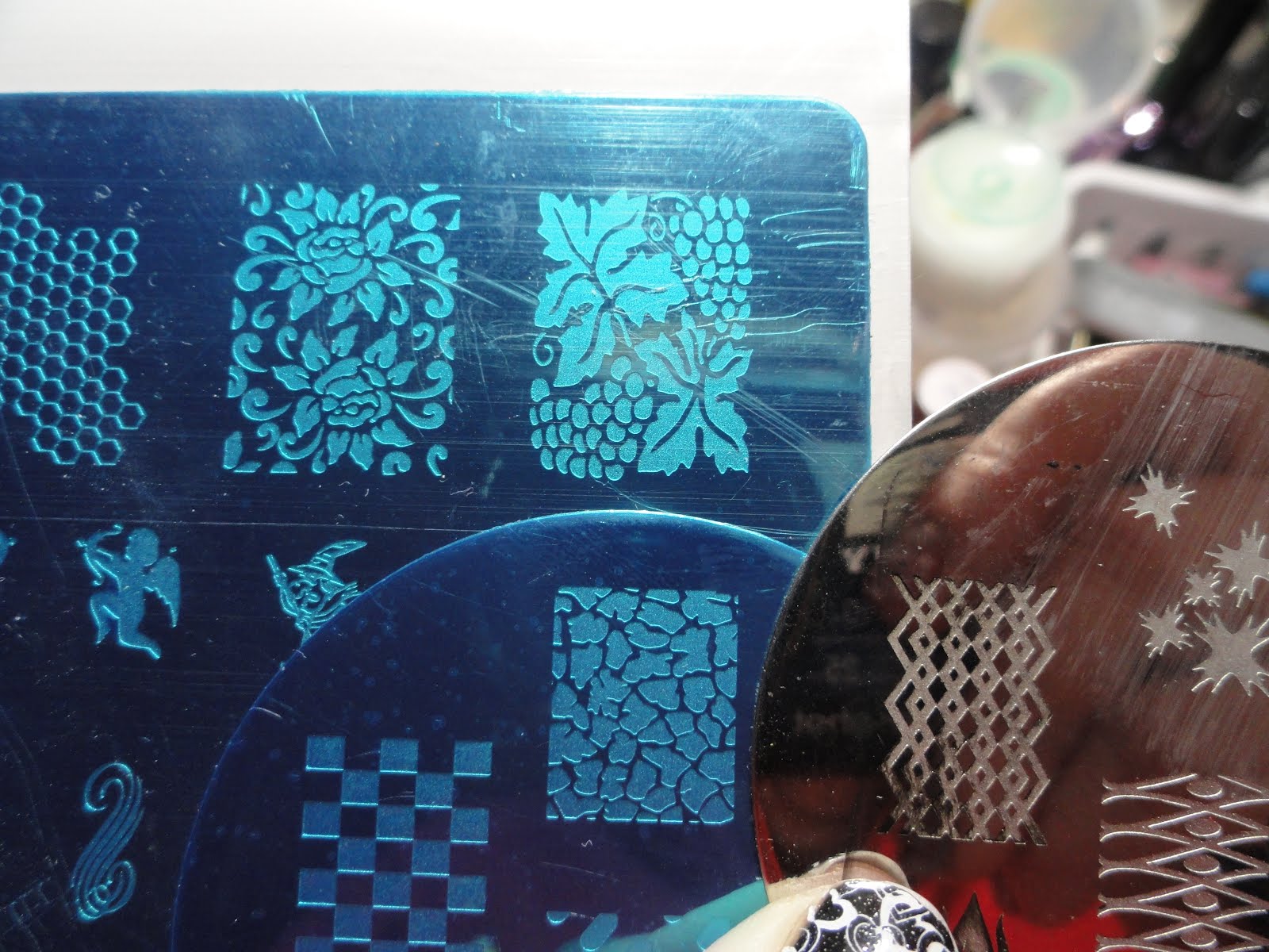 For comparison sake, Cheeky (bottom left) against BM (bottom right) against SdP image (upper design; grapes and leaves); while I haven't measured them, I eyeballed the images and I'd say the full size image is pretty close width wise to the second series of the BundleMonster plates, but not quite the same height, and not even close when compared to SdP, H, A or T series which are larger.