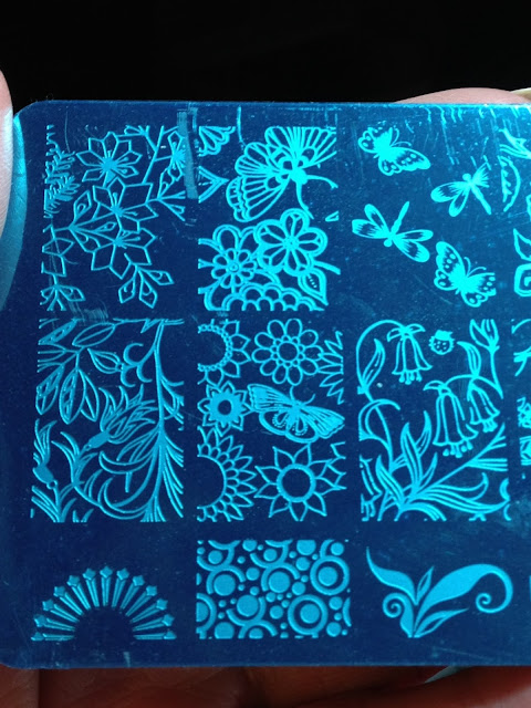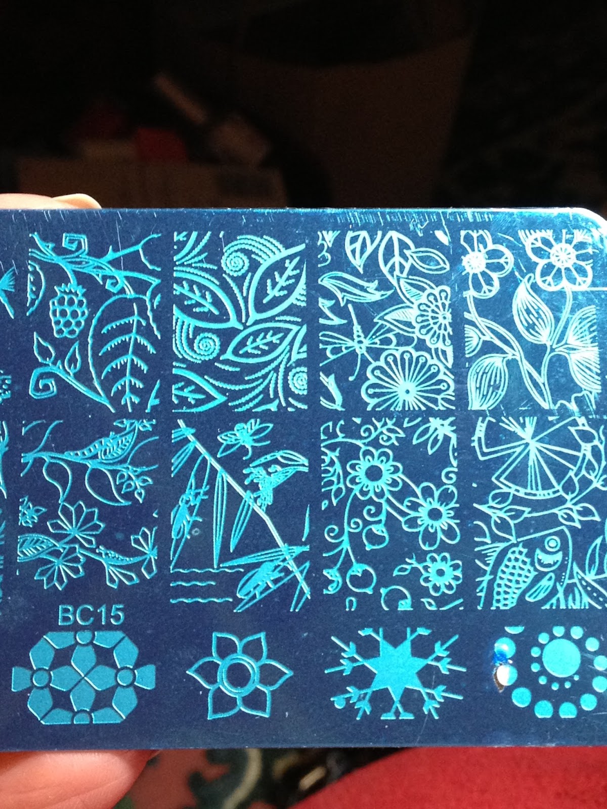 Stamped image on the middle using another image from Messy Mansion MM04 using Funky Fingers Dark Knight. The words on the thumb are from Moyra Stamping Plate 09-Celebration. Added a few random shamrocks for filler using another image from Messy Mansion MM04. Placed with clear jelly stamper.